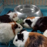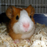 Mange mites (Trixacarus caviae) are a common cause of hair loss, and other symptoms may also include excessive scratching, unusually aggressive behavior when touched (due to pain), and, in some instances, seizures. Guinea pigs may also suffer from “running lice” (Gliricola porcelli), a small, white insect which can be seen moving through the hair; their eggs, which appear as black or white specks attached to the hair, are sometimes referred to as “static lice”. Other causes of hair loss can be due to hormonal upsets caused by underlying medical conditions such as ovarian cysts.