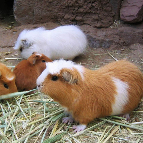 The domestic guinea pig, or simply guinea pig, also known as cavy or cuy for livestock term, is a species of rodent belonging to the family Caviidae and the genus Cavia. Despite their common name, these animals are not in the pig family Suidae, nor do they come from Guinea. They originated in the Andes, and earlier studies based on biochemistry and hybridization suggest they are domestic descendants of a closely related species of cavy such as C. aperea, C. fulgida, or C. tschudii and, therefore, do not exist naturally in the wild. Recent studies applying molecular markers, in addition to studying the skull and skeletal morphology of current and mummified animals, revealed that the ancestor is most likely Cavia tschudii.