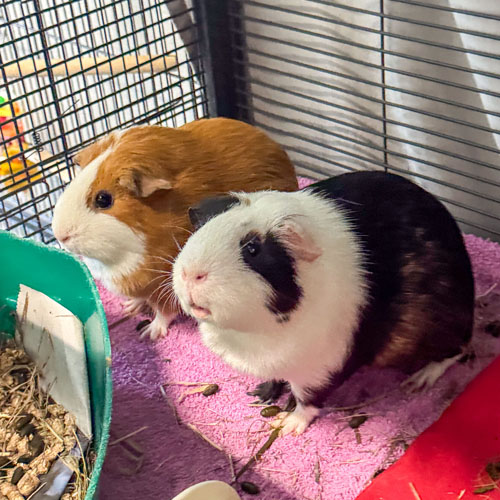 • Guinea Pigs bond easily with their pet parent(s) and will communicate through various sounds such as squeaks, chirps and purrs.
